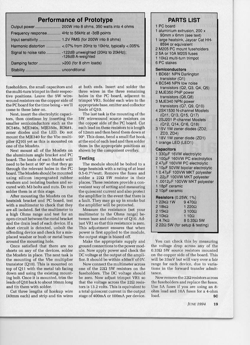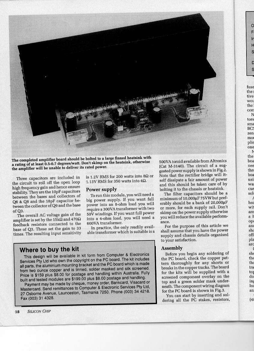 Silicon Chip Magazine in June 1994 as a Power Amplifier Module and has