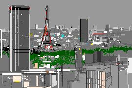 una gran avenida con edificios bajos que a la inversa.