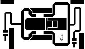 Aquí está en escala real el diseño del circuito impreso el cual debe ser de doble cara (la otra debe ser completamente cobre) y en material epoxy.