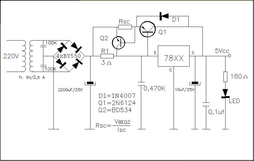 No obstante, la efectividad que nos proporciona el regulador para la función de cortocircuito, no la podemos dar por buena a la hora de aplicarlo al transistor de potencia, ya que es un circuito añadido y puede que no responda con la rapidez suficiente y para evitar estos inconvenientes, intervendremos en este apartado con un circuito añadido.