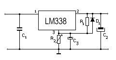 En ellas se presenta un esquema de una fuente sencilla construida, entorno a un regulador µA78HG o el LM338, ambos son reguladores ajustables de 5 A y cápsula metálica TO-3.