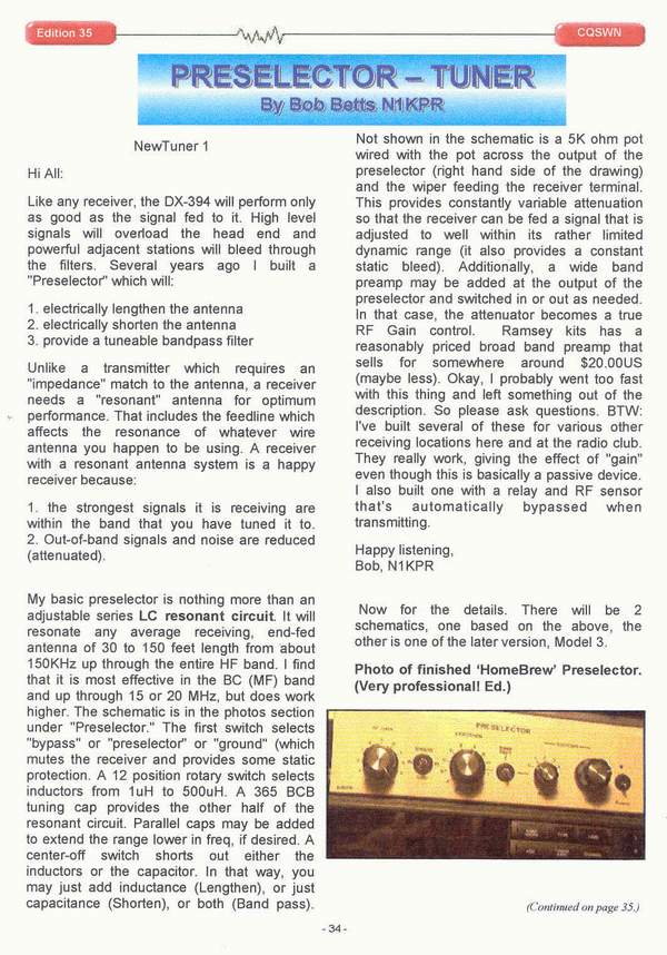 Tony Smith for publishing this in his Australian magazine, CQSWN.