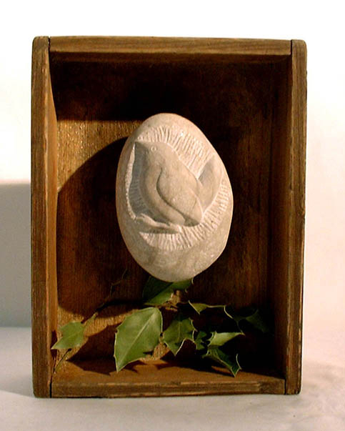 Wren Box | As an artist, Laura walks between the worlds of fine and folk art, utilizing traditional iconography in some very contemporary contexts. The inspiration for her work comes from the Celtic traditions in music, dance and the visual arts which she has studied extensively for more than twenty years. She works primarily in limestone, soapstone, and slate. A recent large scale project is the site specific installation and garden, The Grove, at the Blackstone River Theatre in Cumberland, Rhode Island; she's also shown her work in Providence, Maryland, Toronto, Worcester and New Bedford. Laura is an art teacher at an urban public school, holds an MFA in sculpture from the Maryland Institute College of Art, and lives in Providence, Rhode Island, where she maintains her studio at the unique downtown alternative arts center, AS220. |