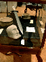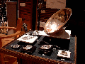 revival of traditional music in our time. The exhibition was organized by the artists of An Droichead/The Bridge in an effort to collect together some of the best artists working in Celtic art today. Catherine Crowe shouldered the responsibility of gathering the artists together and receiving the work, but was unable to be at the show that weekend - the rest of us managed to struggle along without her. The show really looked good- especially considering it was set up in a couple hours in a hotel ballroom without any specialised gallery lighting! Please see the images from the show in the files section. We were so pleased to have Steve Walker joining us for Friday- thanks for your help! Interest was high in the art work from those in attendance, although this was a new experience for them - it was the first ever art exhbition organized at a CCE North American Conference. We fielded many questions and comments, and people really seemed to enjoy having us there. The excellent quality of the work shown impressed the organizers as well. The Langan-Gorman Branch of CCE not only did a great job organizing this huge, multi-faceted event, but took the time to really make us feel welcome, and very special thanks must go to key organizer Eamonn O'Loughlin, who made sure our problems were solved and our needs were met. Many thanks to all the artists who participated: Cari Buziak, multi media; Sharyne Graham, iron age pottery; Michael Carroll, illuminations; Steven Walker, metalsmith; Grahame Atkinson, raku pottery; Robin MacGrogan, pottery; Cindi Mayti, painting; Catherine Crowe, enamelling; Brigitte Wolf, stained glass; David Rankine, illumination; Darrell Markewitz, blacksmith; Laura Travis, stone carvings; Brenda Roy, goldsmith; Patrick Gallagher, multi media; Lorraine Bruce-Allen, painting; Kevin Dillon, illuminations; Aidan Breen, silversmith; Kelly Green, woodcarver; Grant Taylor, furniture maker. Your wonderful work made this show a pleasure to put together. click on these thumbnails to see larger pictures |
