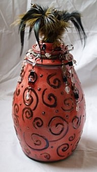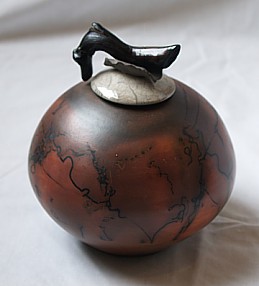"Death of a Las Vegas Show Girl" The use of clay in the rituals of burial are as old as time. Potters are markers in history, ...evolving, ...changing and representing a specific period of time and their culture. They do this through the characteristics they incorporate into their works. My vessels are a part of this continuum. My use of objects found in nature is a way of connecting the organic nature of man to his natural surroundings and is ultimately a reflection of his organic end state. Earth to earth. |