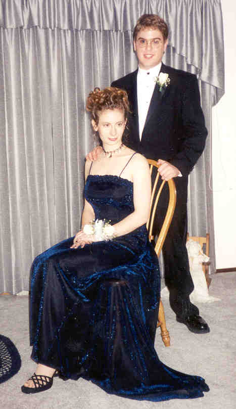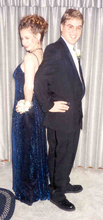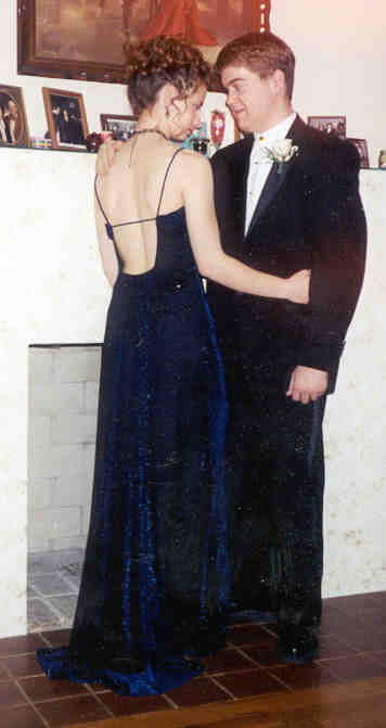 At right is our picture taken by professional photographers. The DJ at prom had video screens, and whenever he cruised the crowd with his camera and stopped on someone, that person got a free picture taken with his digital camera. Well, the first person he stopped on was Sarah. Aren't we lucky. The closeup below the digital picture is probably my personal favorite. |