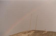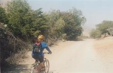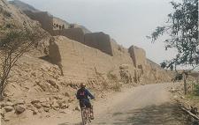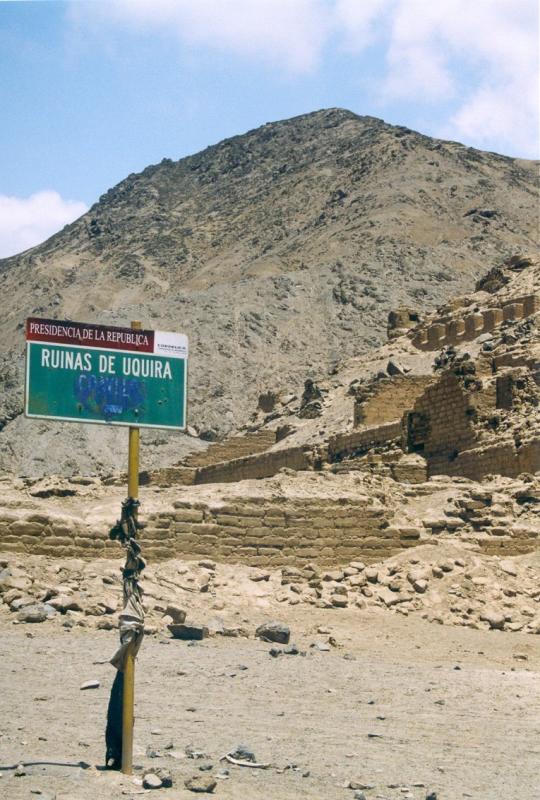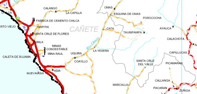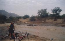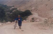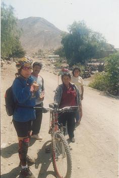 | CICLOTURISMO PERU: Valle de Asia / Omas. Viaje al Arco Iris Reporte del viaje 5 al 7 Abril 2007 Distancia recorrida: 110 km. Ubicación: Valle de Asia / Omas, Cañete, Yauyos, Lima, Perú Fotos del viaje: http://es.pg.photos.yahoo.com/ph/anibpm/my_photos Hola cicloturistas: En los días de Semana Santa mi esposa y yo fuimos en bicicleta por el Valle de Asia hasta Omas, la experiencia fue ciclistícamente exigente, paisajísticamente un tanto seca, árida y desolada pero emocional y espiritualmente muy grata y extraordinaria. Como casi siempre, salimos tarde de Lima, eran las 11:30 am y en el terminal de bus Soyuz la cola de pasajeros medía 200 metros y avanzaba lentamente a medida que salían los buses llenos cada 5 minutos con destino al sur de Lima. Nos cobraron abusivamente S/. 30.00 por cada uno y S/. 10.00 por las bicicletas. Partimos a las 2:30, llegamos a Asia a las 4:00, compramos algunas cosas que faltaban y antes de partir almorzamos un buen y rico menú en el restaurante de la señora “charapa” que está justo en la esquina donde empieza el camino hacia Coayllo, frente al local llamado La Huaca, junto a la carretera. Partimos a las 5:00 pm. rumbo a Coayllo, por un camino afirmado de textura variada: tierra, arena y restos del asfaltado de una antigua pista, que pasa por un basural al principio, luego por un descampado, atraviesa el languidecente poblado de Santa Rosa de Asia y que sigue subiendo hasta llegar a Coayllo. En el camino se nos hizo de noche, así que las linternas frontales nos facilitaron la pedaleada corta nocturna. Eran días de Luna Llena y esperábamos apoyo lumínico lunar en cualquier momento después del anochecer, sin embargo el impenetrable cielo nublado mantuvo la ruta a oscuras. Coayllo, a 18 km. de Asia, es un pueblo pequeño y tranquilo, con una antigua iglesia medio desvencijada y a medio refaccionar, hay alumbrado público y en las casas, el agua potable es escasa y solo por horas. Hallamos donde comer y comprar cosas y un pequeño hotel (sin aviso) de 3 pisos, al que llegamos preguntando para ubicarlo a 1 cuadra de la plaza central. Aquí pasamos la noche, había habitaciones, pero no había luz, ni agua. Lo del agua era comprensible por la escasez crónica que padece el pueblo, lo de la luz era por un defecto en las instalaciones eléctricas del hotel. Bajo esa perspectiva y sin otra opción de alojamiento por los alrededores, no quedaba sino resignarse. Sin embargo la intolerancia de María Elena, mi amor por ella y mi curiosidad pudieron más que la resignación. Le preguntamos al dueño qué problema tenía con la luz, a lo cual respondió que algo estaba mal, pues los fusibles se quemaban, los cables recalentaban en el tablero de interruptores y el medidor giraba loco marcando un gran consumo aún teniendo solo 1 foco encendido. Supuse que el problema sería algún cable cruzado o conexión defectuosa, así es que me aventuré a decirle al dueño que me dejara revisar las instalaciones, cosa que no resulta ser muy complicada si se tiene una idea básica de cómo es una instalación doméstica. Así que me puse a destapar los interruptores y tomacorrientes en busca de la falla. Nada. Luego de pensar un poco me puse a identificar los cables por sus colores, ubiqué y aislé los que conducen corriente al segundo piso, donde están las habitaciones, separándolos del resto del edificio. Probamos y...Yahoooo!!! Si funcionó, ahora el medidor registraba normal, los cables no recalentaban, ni se quemaban los fusibles, aunque una parte del edificio quedó sin corriente. Ahora si, la idea de pasar la noche en este hotel era más aceptable a pesar de que nos bañamos con balde y jarra, ni modo, peor es nada. En pago por el improvisado servicio de reparación eléctrica, dormimos gratis esa noche en el hotel. Nos acostamos tempranol, para proseguir a primera hora por la mañana y avanzar antes de que caliente el sol. El valle de Asia, es uno de las más áridos de la costa central del Perú, en l aparte baja del valle el agua escasísima ha determinado el éxodo de la mayoría de lugareños. Desde hace 3 años que no baja agua por el río, este año recién en Marzo hay agua y nadie espera que sea mucha ni muy duradera. La agricultura aquí es casi una utopía. Los únicos cultivos que sobreviven las largas sequías son los nísperos y pacaes que languidecen y cuyos frutos se secan en las ramas pues no hay quien los apañe. La extracción de agua subterránea es una alternativa costosa que casi nadie puede sufragar, los molinos de viento son un paliativo solamente. En la parte alta del valle cerca a Omas hay más agua y el verdor de los cultivos contrasta con la sequedad de los cerros que flanquean el valle. El camino que recorre el valle es una trocha carrozable en buenas condiciones. A las 06:00 reanudamos la marcha, muy cerca del pueblo pasamos por el sitio arqueológico Sequillao, en abandono y un tanto degradado, a 2 km. nos encontramos con el río Asia en crecida, había llovido en la sierra alta y el agua venía color barro. No hay puente, así que la cruzada fue a pie cargando las bicis, con el agua por encima de las rodillas, sin zapatos las piedras en el lecho del río hacen doler los pies y las que arrastra la corriente golpean, una verdadera tortura. 3 km. más adelante llegamos al extenso sitio arqueológico de Uquira, después de una breve visita y algunas fotos, continuamos hasta el actual pueblo del mismo nombre donde desayunamos plátanos, pan y reabastecimos agua. Avanzamos 6 km. más y pasamos por el desolado y árido caserío de La Yesera. Aquí fuimos preguntados a donde íbamos, a Omas respondimos, falta bastante todavía nos dijeron. 1 km. más adelante nos encontramos con el sitio arqueológico Los Gentiles, también grande e interesante. La capilla solitaria y las casas abandonadas a un lado del camino bajo el sol abrazador refuerzan la sensación de desolación. En Huañañabe, 5 km. más adelante en una curva junto a la 