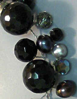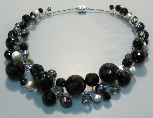 15-16 inch choker of individually wrapped large faceted jet, swarovski crystal, freshwater pearls, with magnetic catch style: FN1BKL