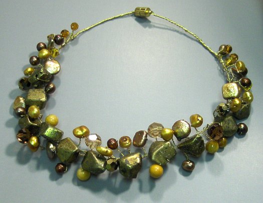 pyrite, freshwater pearls, faceted crystals - magnetic catch style: FN33PYR