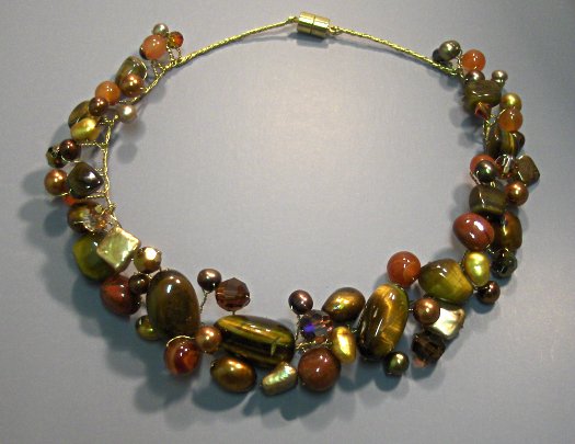 wrapped "floating" brown tiger eye, red jasper, carnelian, fw