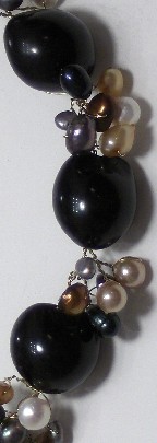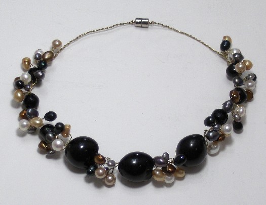 15-16 inch floating kukui nut pods, multi color freshwater pearls, with silver magnetic catch style: FN3BKK