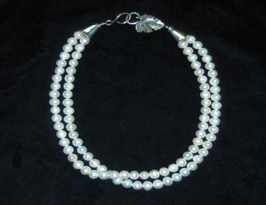 2 strands fine quality round freshwater white pearls 8-10 mm, sterling silver leaf catch style: P2W $248.00 |