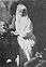 O médico Dr James Gully toma o pulso de Katie King; um de muitos testes para demonstrar as diferenças físicas entre Katie King e Florence Cook.