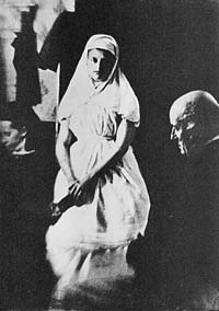 Esta fotografia foi tirada por Sir William Crookes usando a luz. Está sentado à direita o médico Dr. James M. Gully. “Eu registrei o pulso de Katie. Bateu firmemente em 75, enquanto o pulso da senhorita Cook verificado a seguir estava em sua taxa normal de 90. Ao auscultar a caixa torácica de Katie eu ouvi o coração bater ritmadamente, pulsando até mesmo de forma mais constante do que o coração da senhorita Cook, quando permitiu que eu tentasse uma experiência similar. Testado da mesma maneira, os pulmões de Katie parecem ser mais sadios do que os da que sua médium,