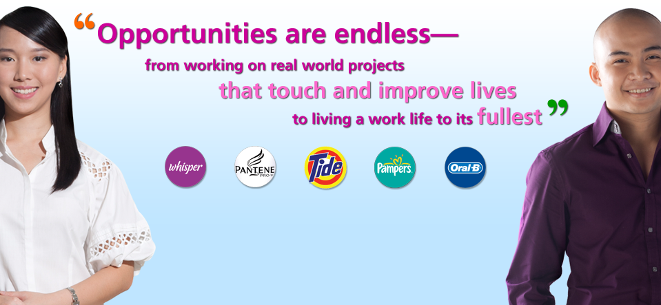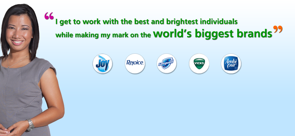 Welcome to the P&G Philippines Careers website. We encourage you to view the tabs above to learn more about the great opportunities available at the world's largest consumer goods company!
