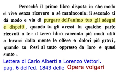 ![]() Cappella delle Arti liberali 3. Leon Battista Alberti, l'ideatore? Scheda su Della tranquillità dell'animo di Alberti ![]() A proposito del tomo I delle "Opere volgari" curate da Anicio Bonucci, apparso a Firenze presso la Tipografia galileiana nel 1843. I "tre libri portano in vari codici intitolazioni diverse; mentre in alcuni hanno il titolo latino De profugiis aerumnarum; in altri quello di Profugiorum ab aerumna, libri tres; in altri: Della tranquillità dell'animo. Ma noi abbiamo creduto dover preferire quest'ultimo", si legge a p. 4 dell' "Avvertimento" di Bonucci che introduce al testo albertiano. Alla p. 6 del testo intitolato appunto "Della tranquillità dell'animo libri tre", troviamo quale introduzione all'opera una lettera a Lorenzo Vettori di Carlo Alberti, fratello di Leon Battista, in cui si narra che il manoscritto dei tre libri era andato perduto: "... tu conosci la natura di messer Battista mio fratello; ei non sa negare a persona, cosa la quale gli sia chiesta: non dirò di più. Un certo suo domestico gli chiese questi libri subito che furono compiuti, già passati anni circa trenta; ed ebbe la prima copia originale. Poi diede scuse e negolla avere, e non non sapevamo onde recuperarla. Ora la ritroviamo...". Leon Battista, spiega Carlo Alberti, "scrisse quest'opera con impeto d'animo allora giovanile, commosso da ingiurie di certi perfidi uomini suoi emuli, occulti nemici". Carlo Alberti aggiunge un'analisi dei tre libri: "Voi adunque insieme, quali amate messer Battista, leggete questi libri con diletto; e in quel modo sarete molesti a chi vi ha offeso, e vi avrete utilità. Perocchè il primo libro disputa in che modo si vive senza ricevere a sè maninconia: il secondo ti dà modo e via di purgare dell'animo tuo gli sdegni e dispetti, quando tu gli avessi in qualche parte ricevuti a te: il terzo libro racconta più modi utili a levarsi dalla mente le offese e dolori più gravi, quando tu fossi al tutto oppresso da loro e quasi sunto [consunto]". ![]() Alla pagina 2. Cappella delle Arti liberali, progetto di Alberti? | Arti liberali. Indice ![]() ![]() Gambalunga, 400 anni ![]() Umanesimo riminese. Indice |