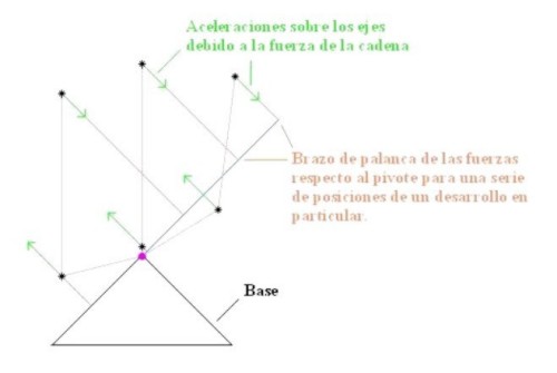 pedalier est� colocado muy pr�ximo al pivote principal. Por lo tanto el brazo