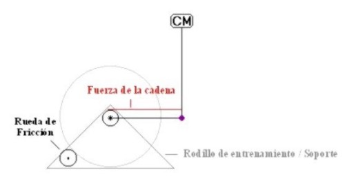 que hacer pasar la fuerza de la cadena si queremos que los dos basculantes mantengan