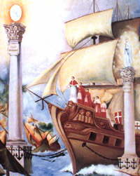 la Hostia. Con otra cadena, que pende de la popa, la sujeta de la parte
