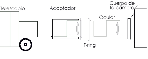 Para capturar imágenes utilizando una cámara digital unicamente necesitas el adaptador adecuado para integrar la cámara al ocular, existen en el mercado (E.U.) varios modelos.
