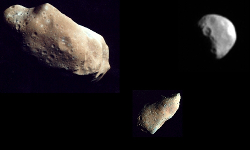 Marte tiene dos satélites, Deimos de solo 16 km. y Fobos de 28 km., ambos medidos en su parte más larga pues no son esfericos.