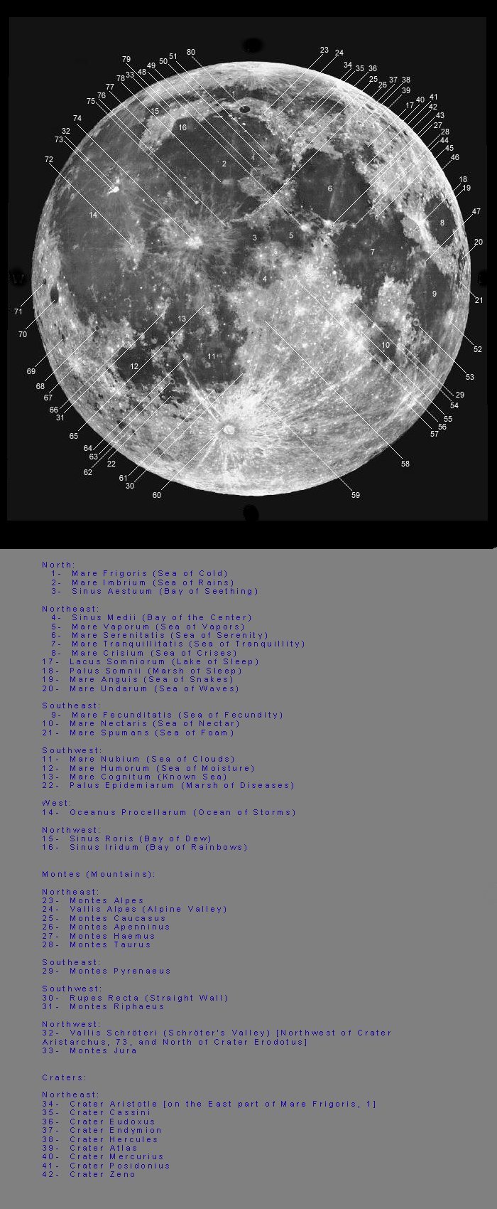 La luna dista medianamente 384,400 km. de la tierra, durante el perigeo que es cuando esta más cerca, se encuentra a 363,000 km. y cuando se aleja se le denomina perigeo alcanzando 406,000 km. Su diámetro es de 3,476 km. es decir casi una cuarta parte del diámetro de la tierra, debido a que no tiene atmósfera la temperatura en su superficie varía de La luna dista medianamente 384,400 km. de la tierra, durante el perigeo que es cuando esta más cerca, se encuentra a 363,000 km. y cuando se aleja se le denomina perigeo alcanzando 406,000 km. Su diámetro es de 3,476 km. es decir casi una cuarta parte del diámetro de la tierra, debido a que no tiene atmósfera la temperatura en su superficie varía de –155 ° C a 105 ° C.Mapa de la luna