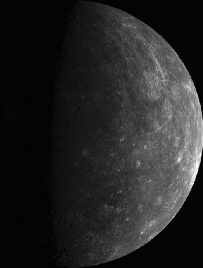 Su distancia media del sol es de 57,910,000 km., la temperatura en su superficie varia de –180 ° C a 430 ° C.