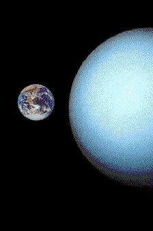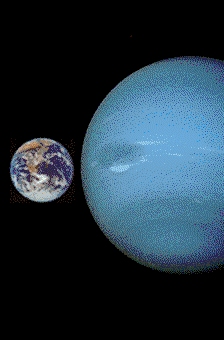 El hermano gemelo de Urano, con estructura de igual forma, núcleo, capa de agua, amoníaco y metano, y una atmósfera formada de hidrógeno en mayor cantidad que helio y metano, otra característica que identifica a Neptuno con Urano es que Neptuno es menor solo por menos de 1,590 km., pues su diámetro ecuatorial es de 49,500 Km. y su día dura 16 horas con 7 minutos, 67 minutos menos que el día en Urano.