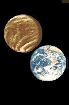Un planeta semejante en tamaño a la tierra, 12,100 km. de diámetro, sin embargo la presión atmosférica, las altas temperaturas y su venenosa atmósfera no permitirían que se diera la vida ahí, compuesta esta última principalmente de dióxido de carbono y una pequeña porción de nitrógeno, su presión atmosférica es casi de 90 veces la que hay en la tierra y la temperatura en su superficie de 456 ° C , aunado a esto, sus densas nubes hacen de venus un gigante invernadero, se considera un planeta activamente volcánico de aquí que sus nubes sean saturadas de vapores de azufre.