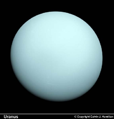 Otro gigante gaseoso, mide 47,100 Km. de diámetro ecuatorial, su distancia media al sol es de 2,870,990,000 km., dado que su orbita es muy extensa, su año dura 84.01 años terrestres y su día dura 17 horas con 14 minutos, la temperatura de las nubes superiores alcanza –210° C.