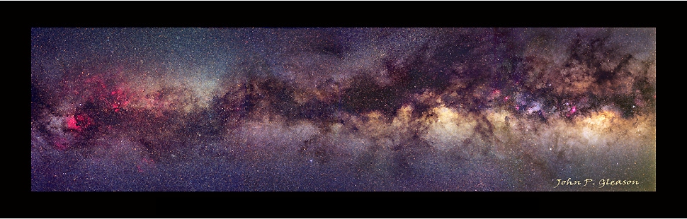 En la región de la Cruz del Norte, que forma parte de Cisne, se divide en dos corrientes: la corriente occidental que brilla cuando atraviesa la Cruz del Norte, palidece cerca de Ofiuco, a causa de las nubes de polvo, y aparece de nuevo en Escorpión; y la corriente oriental, que es más brillante cuando pasa por el sur a través del Escudo y Sagitario. La parte más brillante de la Vía Láctea se extiende desde la constelación del Escudo a Escorpión, a través de Sagitario.