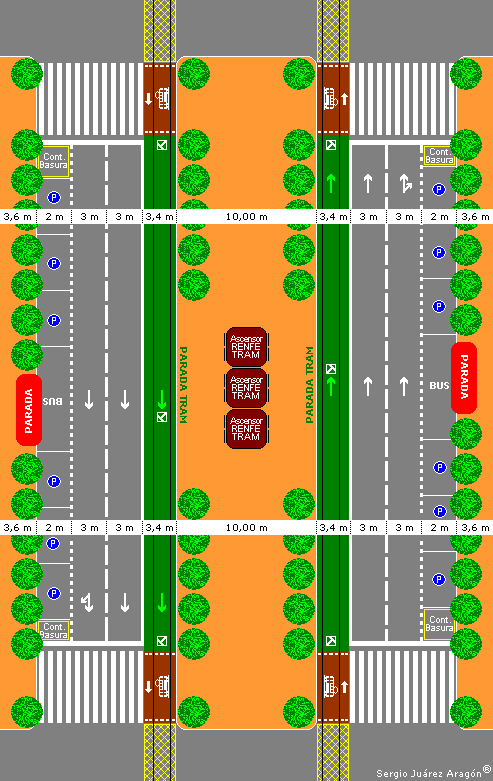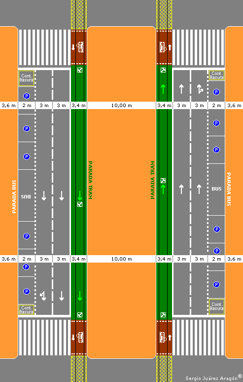 a cada lado y un carril para coches en paralelo o queremos una doble