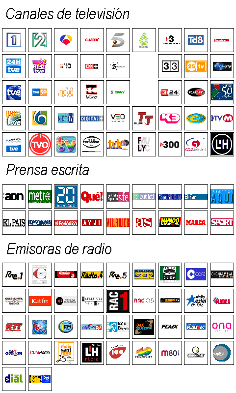Posando el ratón sobre el logotipo de cada medio vereis cómo se llama el mismo y haciendo click sobre el citado medio podreis acceder a su pagina web. |