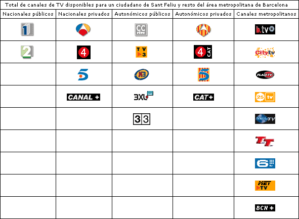 de TVE, a saber: TVE-1, TVE-2 y TVE-BCN