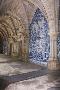 de cruzaria se apoia em pilares compostos de ambos os lados da ala. Os azulejos do 2º piso do claustro são
