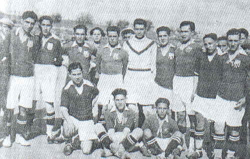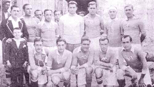 De pie: Juste, López, Salvador Pacheco, Fermín, Hervás y Zugazaga. Agachados: Crego, Manolete, Mauri, Rodríguez y Ángel Pacheco.