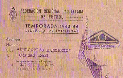 Licencia de un jugador de la temporada 1943-44.