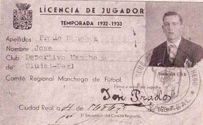 Licencia del jugador Pradillo, correspondiente a la temporada 1932-33.