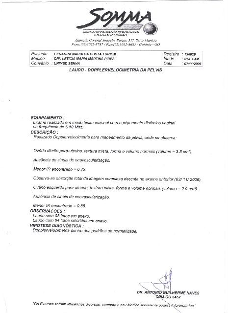 ovariano e, em seguida, o laudo do seu desaparecimento. Digo e
