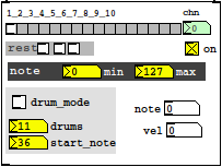 oh yeah underneath start are 2 thingamjigs that send metro , the left is for everything but the far right dmachine. the right is for dmachine(unselsect the 2 yellow toggles above dmachine to turn it off all the way) u can send the 4 channels out to your hardware synths. I wouldn't mess with the dmachine at first till you get everything going, I don't like it with this stuff anyways but it's there.