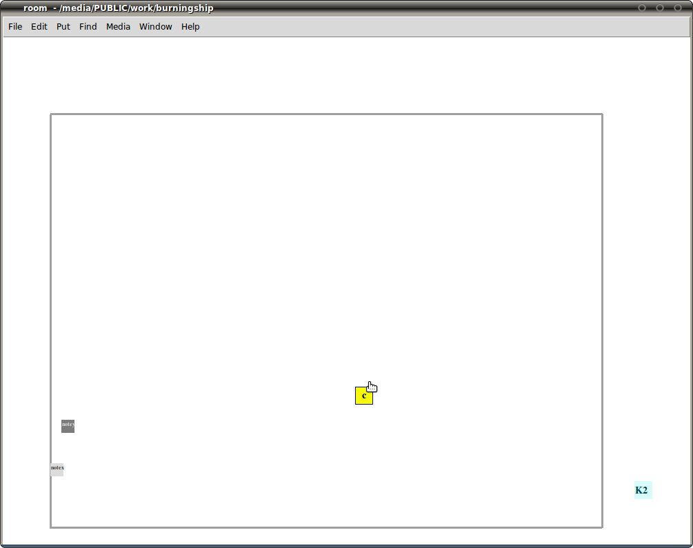 select room and click pd room once in the room you can hit ctrl+e and drag the yellow canvas to control the music
