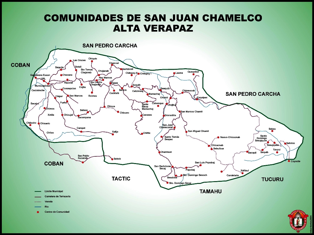 Curioso: Sabia que Políticamente San Juan Chamelco está dividida en una cabecera municipal y entre aldeas y caseríos suman 66 casi todas las aldeas tienen nombre quekchi, así mismo el área urbano se divide en cuatro barios. Para mas información visite la sección de: Información General |