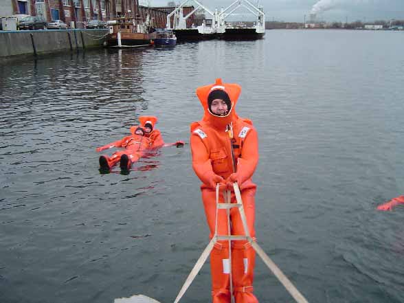 Every seafarer must run through an obligatory maritime safety training program before he/she can go to sea. With me now crossing the border between sailing as hobby and becoming a professional sailor I also had to take part in these classes. The training covers all kind of major hazards that you might meet while working aboard a seagoing ship. Two interesting weeks packed with drills about abandoning the ship and fire fighting of which you can see the photos below. But also you learn a lot about safe working practices, general behavior on ships and social responsibilities inside the crew and with passengers or other people who go to sea with you.