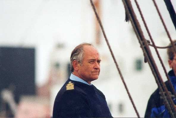 Viktor Antonov, born in Leningrad (now St. Petersburg) just before the 2nd world war, surprisingly did not grow up in a maritime orientated family. Neither his father, a metallic engineer, nor anyone in his close family had anything more to do with the sea than their love of a good plate of fish. However, Viktor will tell you that he had his bond with the sea for as long as he can remember. This special feeling survived the time from 1941 untill the end of 1943 when, together with his mother, he had to flee Leningrad and stay in the Urals. On his return he completed his schooling. Not having the right papers to join the navy, he went to the Railway Institute, where he graduated 1959 and then worked at the Leningrad Central Station. An old love never dies and after three years this sea-dog-to-be managed to become a trainee aboard the Admiral Makarov State Maritime Academy sail training barquentine, SIRIUS, built 1948 in Turku. Studying during the winter in the (frozen) port of Lenengrad, he qualified as third mate on SIRIUS in 1967 and first mate in 1970. In 1971, after 16 years, , he left to work on the Academy's cargo motor training vessel, starting as mate and becoming master 1981. This vessel sailed in the Baltic and to the Mediterranian with 4000 tons of dry cargo, 156 trainees and 48 permanent crew, including teachers who in 5/6 months taught their pupils all secrets of the art of navigation. In the meantime, Viktor Antonov combined his professional life at sea with his sailing hobby. Not a free moment seems to have passed without sailing. First 6 metre yachts, then Dragons and Stars, then offshore races to Tallin. His first Tall Ships Race came in 1978 as master of the 12 metre l.o.a. yacht RITZA in the race from Gothenburg to Horten, Norway, via Fair Isle; result: 2nd in class behing Peder Lunde, twice Olympic champion for Norway. More success came in 1980, with a first in class after a neck and neck race from Kiel to Karlskrona with the Dutch naval ketch URANIA. Then in 1987 the Academy aquired the sail training full rigged ship MIR and Captain Antonov became her master. The many years of sailing experience in so many different vessels clearly paid off when MIR won one Tall Ships Race after the other. Captain Antonov is hard to beat. Those who have sailed with him on board MIR have witnessed his increadible seamanship, his intuition as a thorough seaman. Viktor Antonov does not need barometers let alone weather forecasts it seems. He knows. It is as if he is the one who makes the weather. Luckily for the rest of the fleet he is perfectly human, as the Bicentinnial Tall Ships 2000 race from Halifax to Amsterdam showed. The cold front he picked up that made him speed across the Atlantic alas overtook him in the end and he saw St. Catherinine's Point for many a day, loosing an originally good placing. On 26 July 2002 Viktor Antonov handed over his beloved position as Master of MIR to Captain Sergey Timoshkov, who he has known since they sailed together on RITZA in 1978 and 1980, Viktor as master, Sergey as cadet. Was 2002 the last time we will see Captain Antonov in our races? Luckily not. He will spend more time with his wife Nataliya and he will follow his daughter Marina's studies at the Maritime Management Faculty at the Admiral Makarov Academy. Whether he will go back to his hobbies of long distance swimming, downhill or langlauf skiing, remains to be seen. But the president of the Admiral Makarov State Maritime Academy, Professor Ivan I. Kostylev, has asked him to stay as a consultant during races. So the challenge for many other skippers in our races is still there, to try and do better than MIR. I have known Viktor for more than 20 years. It is an honour and a great pleasure to count such a wonderful man among your friends. I have seen him on board MIR at sea, as the winning captain of our races, but also under circumstances that were extremely unhappy and difficult for him and his professional crew. Whatever the circumstances, Viktor always was the same modest and friendly person who as a captain by nature is also a leader by nature. May we often sail against him in the future.