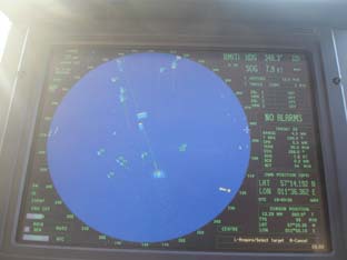 the 24 miles screen. On a radar screen the own ship normally appears in