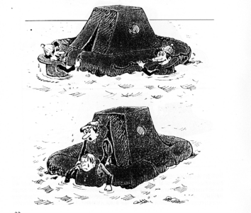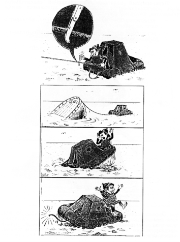 The life raft has got a little leddar over which they can be entered from the water. Unconcious or weak persons should be helped inside as shown in the picture.