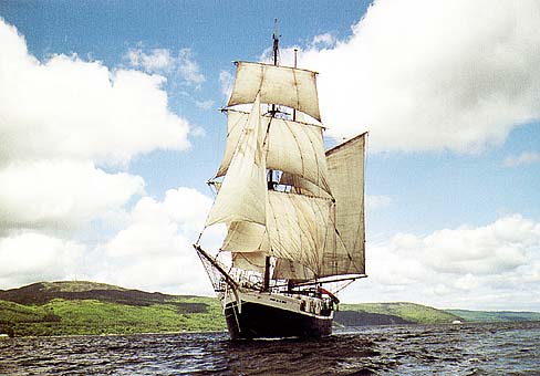 General information: brigantine, loa. 33m, beam 6,4m, draft 3,3m, sail area 400 m2. Can board up to 12 trainees.
