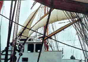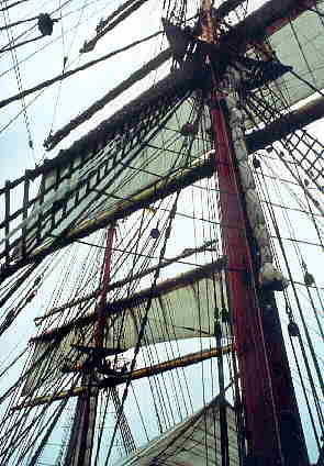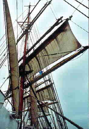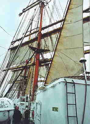 During the Hanse Sail 2001 I took part in a day trip on board KRUZENSHTERN. I had known the ship for some time before as the crews of KRUZENSHTERN and MIR are close friends. Actually my friends on KRUZENSHTERN had started to complain why I always sailed with MIR and not with them.