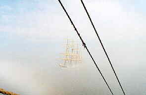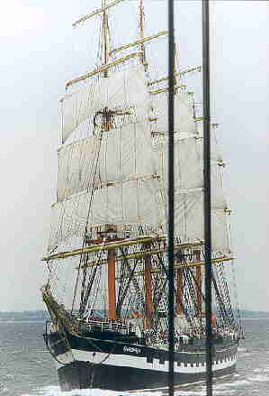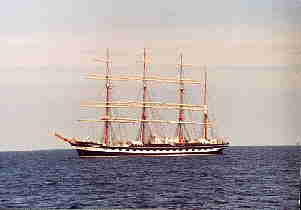 KRUZENSHTERN is a very nice ship. By rigging she is a 4-masted barque what means she has square sails on the first 3 masts and a gaff sail with 2 top sails on the aft mast. With 114m loa she is one if the biggest tall ships ever built. She is the last one of the famous "Flying-P-Liners" still afloat. KRUZENSHTERN was built in 1926 for the German Laeisz Shipping Company, whose vessels all got a name starting with -P-. So her original name was PADUA. Many people still remember her from the old movie "Grosse Freiheit Nr. 7" with Hans Albers. Alike all ships of the company she was well-known for fast voyages and in the old days she sailed several times around Cape Horn.