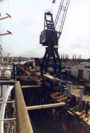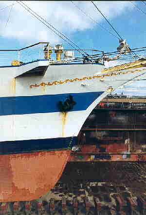 In March 2000 MIR had to undergo repairs in Hamburg's Norder-Werft shipyard. A good chance to take some unusual photos.